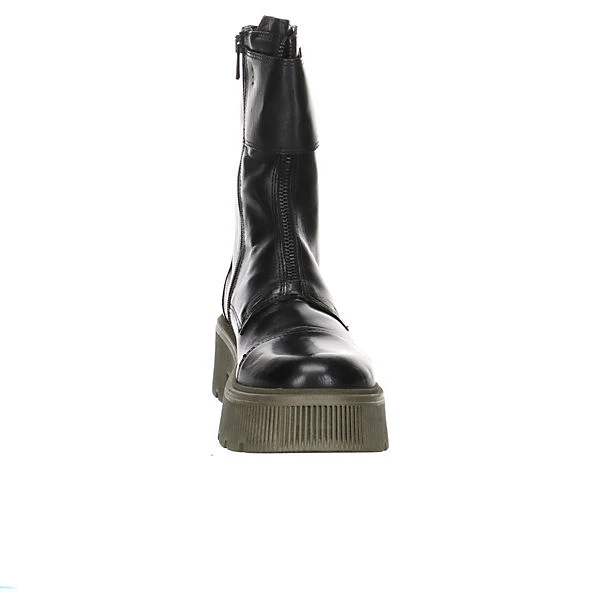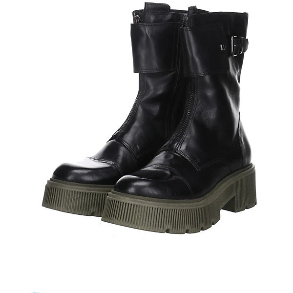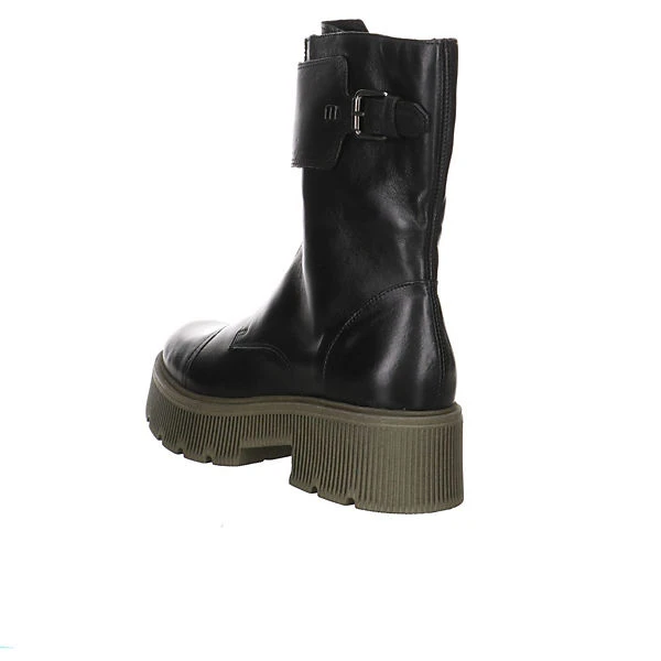 Diese Boots von MJUS sind aus robustem Glattleder gefertigt und mit einer markanten Plateausohle versehen, die farblich abgesetzt ist. Ein dekorativer Reißverschluss auf der Front un dem Gürtel am Schaft wird dem Modell ein lässiger Touch verliehen. Innen ist der Schuh mit einem leicht wärmenden Futter ausgestattet. Dank des praktischen Reißverschlusses ist ein schneller Einstieg garantiert.