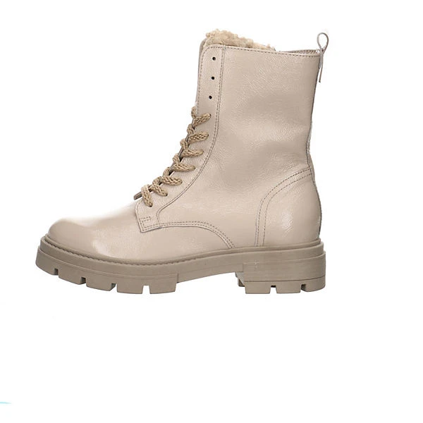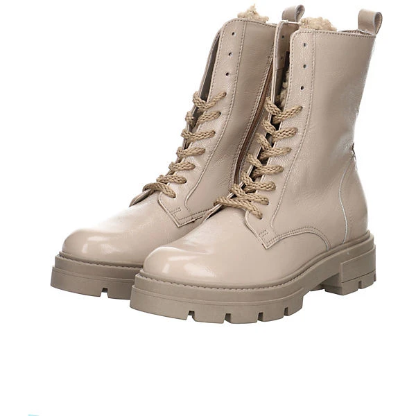 Eine Lasche aus Bucle und ein weiches Lackleder im trendigen Beigeton verleihen diesen modischen Boots von MJUS einen lässigen Look. Grob gestrickte Senkel und ein bequemer Blockabsatz vervollständigen das coole Design. Innen mit Leder ausgefüttert, ist ein angenehmer Tragekomfort gewährleistet.