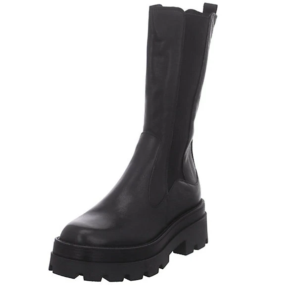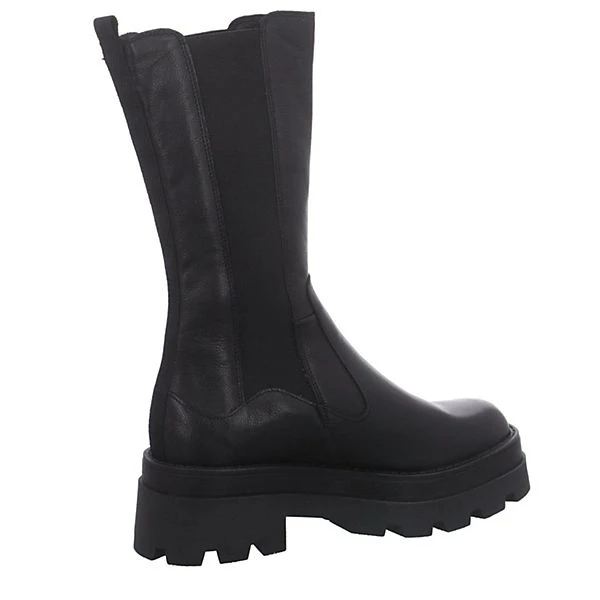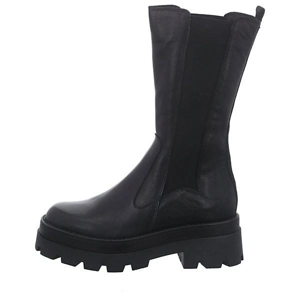 Weiches schwarzes Leder und eine kräftige Plateaulaufsohle verleihen dieser modischen Stiefelette von MJUS das gewisse Etwas. Im angesagten Chelsea-Stil gefertig und mit einer Fersenschlaufe versehen, ist dieses Modell ein vielseitiger Begleiter für den Alltag.