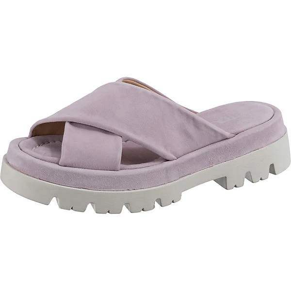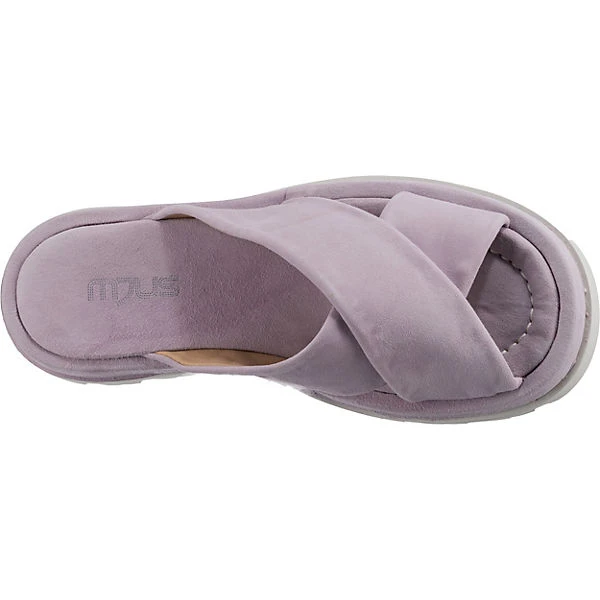 Ein unverwechselbarer Hingucker sind die Pantoletten von MJUS. Das Schuhpaar kommt ohne Verschluss aus, sodass ganz bequem hineingeschlüpft werden kann. Das Obermaterial ist aus echtem Schafsleder. Der Blockabsatz erzeugt eine weitere modische Note. Für ein angenehmes Tragegefühl besteht das Fußbett aus Echtleder.