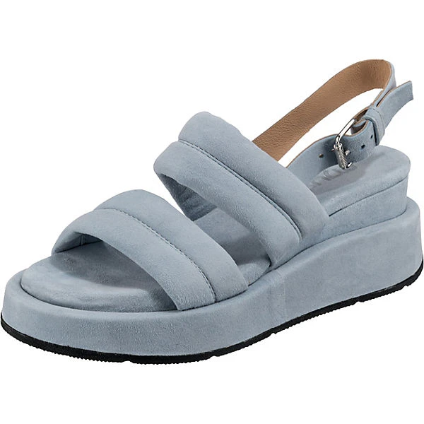 Ein auffälliger Blickfang sind diese Sandaletten aus dem Hause MJUS. Das Fußbett besteht aus natürlich atmungsaktivem Leder, das ein komfortables Trageerlebnis unterstützt. Der Riemenverschluss ermöglicht eine optimale Weitenregulierung. Der mittelhohe Keilabsatz sorgt für ein angenehmes Tragegefühl und einen stilvollen Look. Das Obermaterial ist aus echtem Schafsleder.