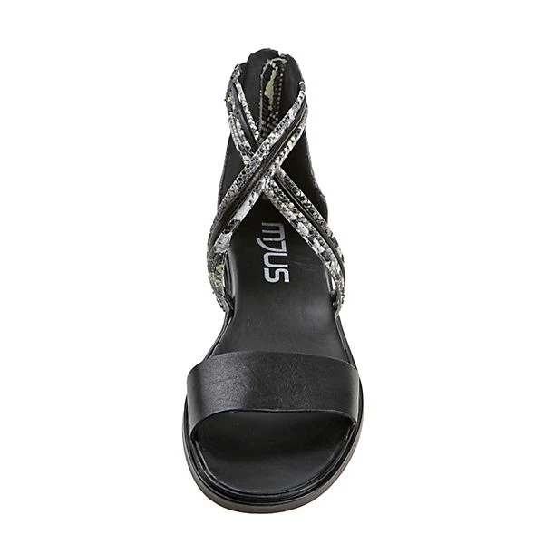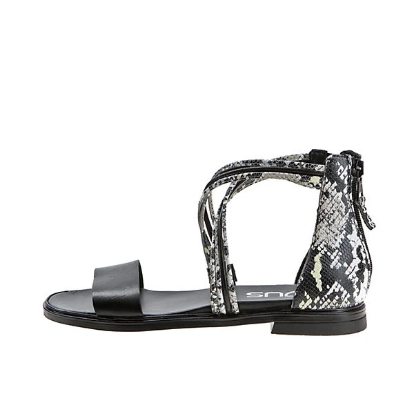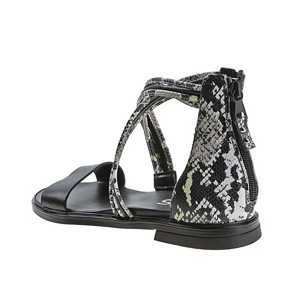 Damensandale in einem Animal-Print Leder und elegantem Schwarzton plus Zipper an der Rückseite