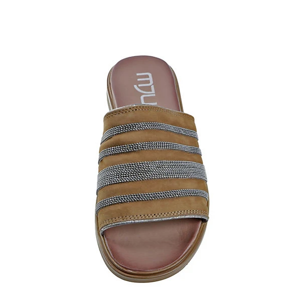 Sommerliche Damensandale in einer tollen Farbkombination mit Zierketten und weichem Fußbett.