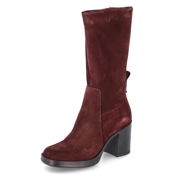 MJUS Damen Stiefel MICAELA Rot Rauleder – Reißverschluss – Ziernähte – elastischer Einsatz am Schaft – Anziehlasche – verstärkter Zehen- und Fersenbereich – flexible, rutschhemmende Laufsohle – ca. 8 cm hoher Blockabsatz